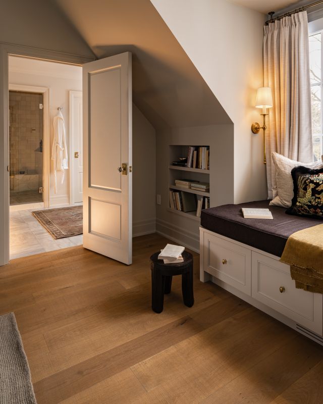 The flooring foundation of this home is our Logs End 7 ½” Saw Distressed Euro White Oak. These wide planks bring an immediate sense of history and warmth to the space. The “Saw Distressed” texture provides a subtle, tactile depth that feels authentic to the touch, while the Euro White Oak offers a sophisticated, neutral palette that anchors the home’s beautiful interior choices.